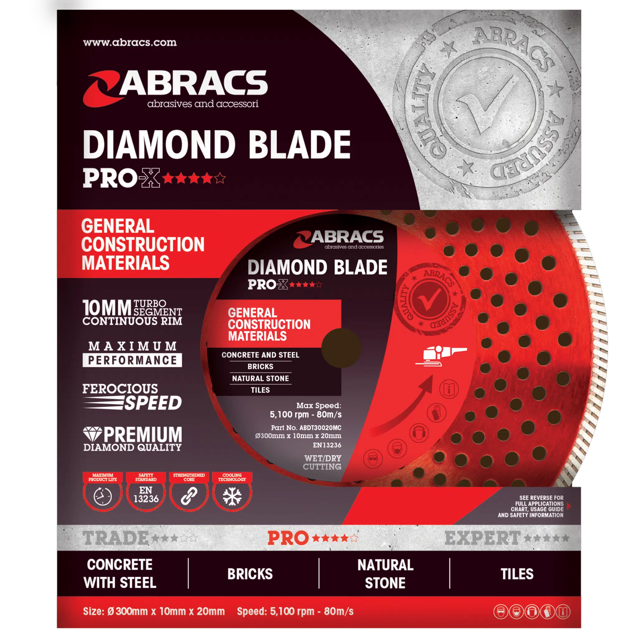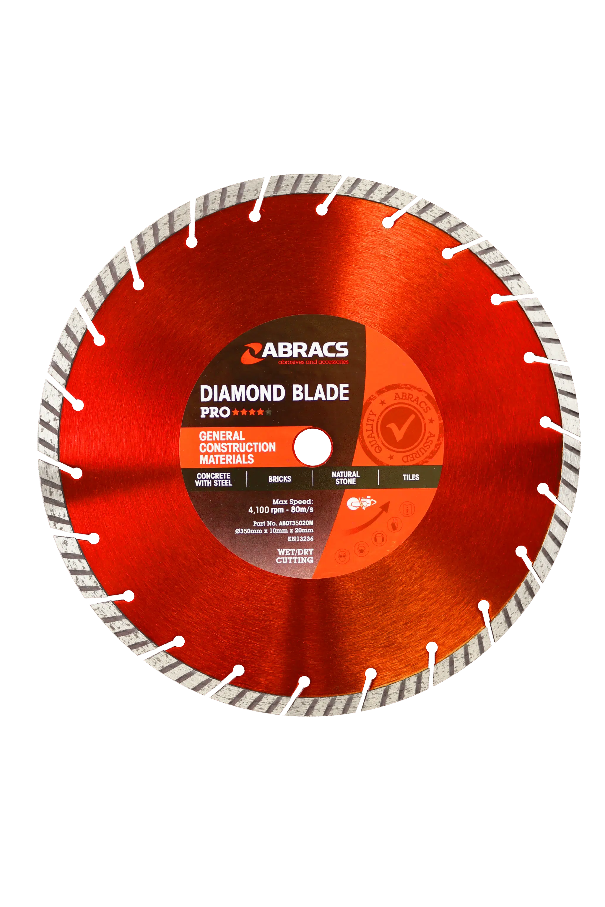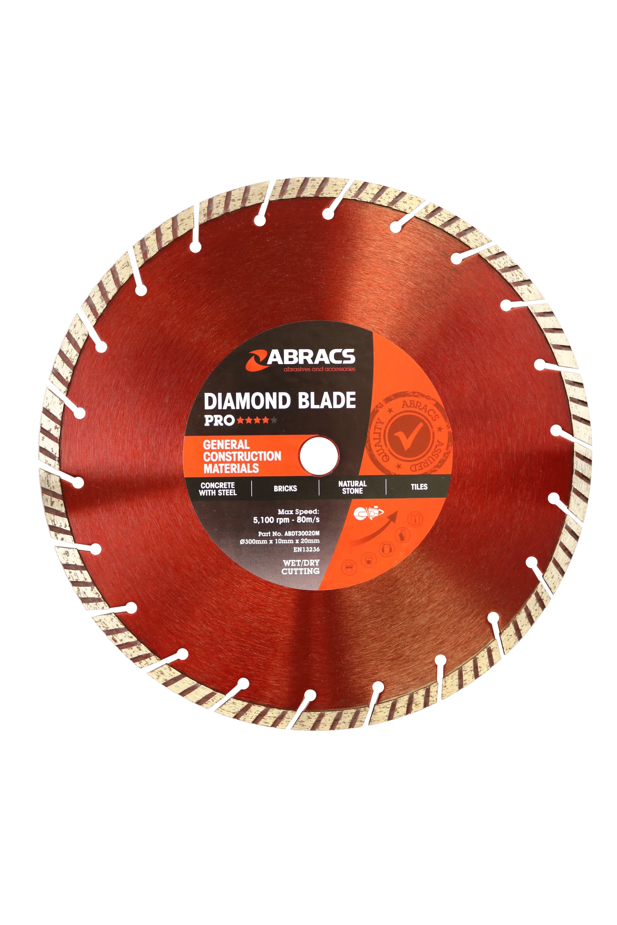 Constructed using high-quality materials, the Abracs Pro Diamond Blade ensures extended life and consistent performance. The robust core resists warping and wear, maintaining its cutting edge through prolonged use.