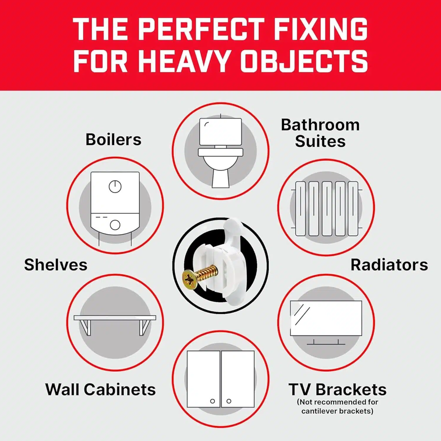 – Heavy Load Bearing: Supports 116kg significantly heavier weights than standard drywall fixings, ensuring safe and secure mountings.