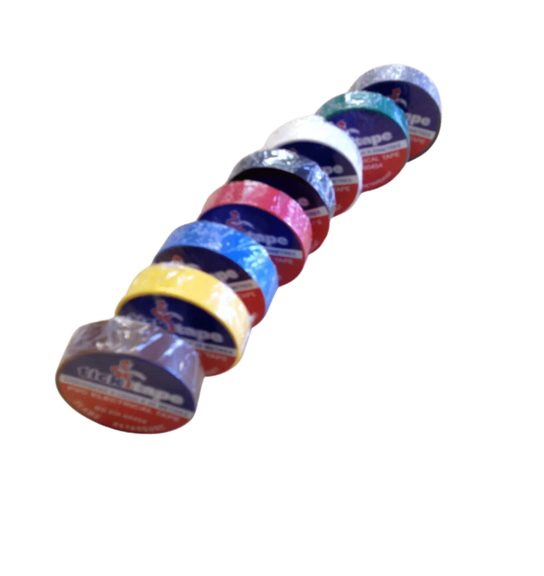 Tickitape PVC Electrical Insulation Tape is available in multiple colours, including black, red, blue, yellow, and green, allowing for effective wire identification and colour coding in electrical work.